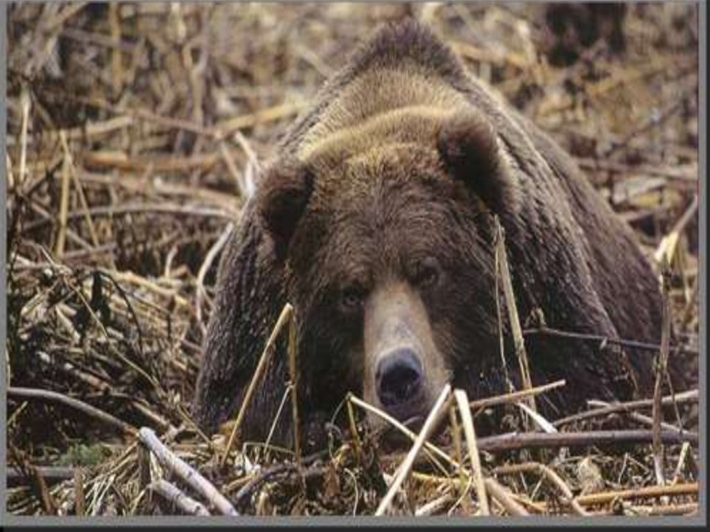 * Бурый медведь самый известный из всехмедведей. Этот медведь «строит» дом