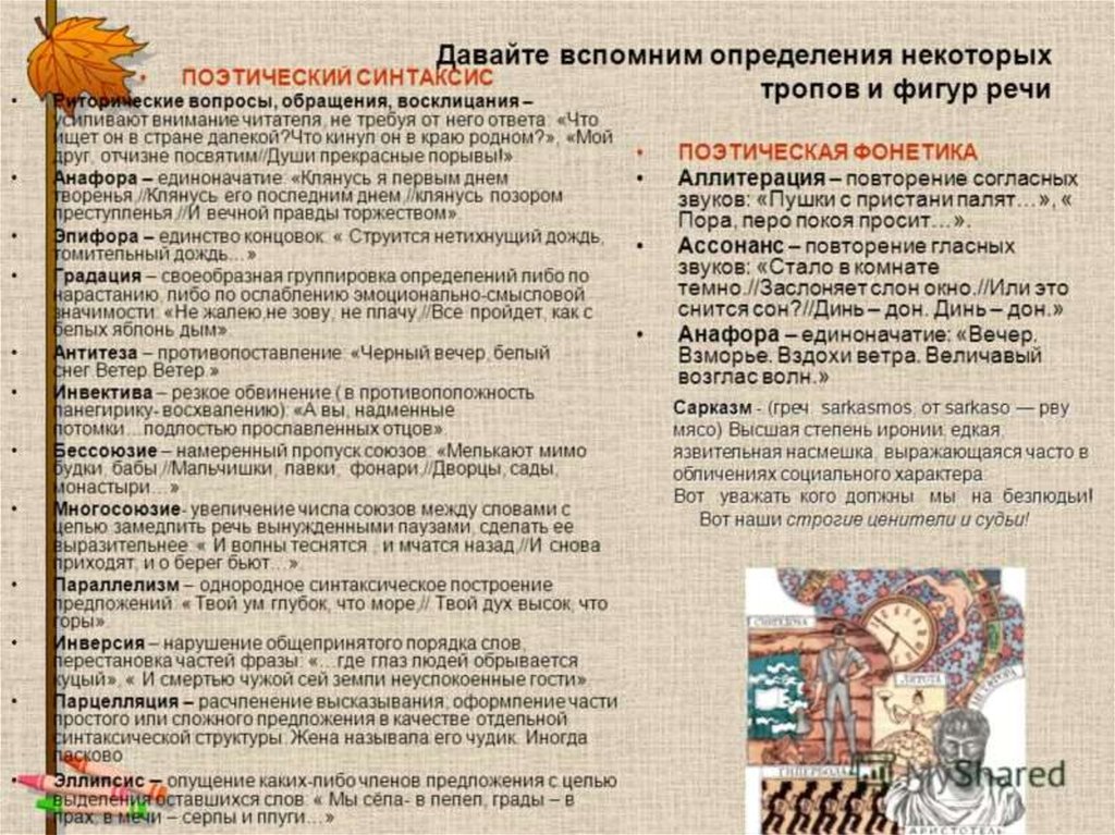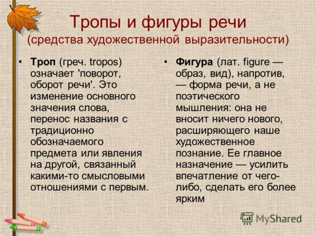 Средства выразительности в языке. Стилистические фигуры и тропы