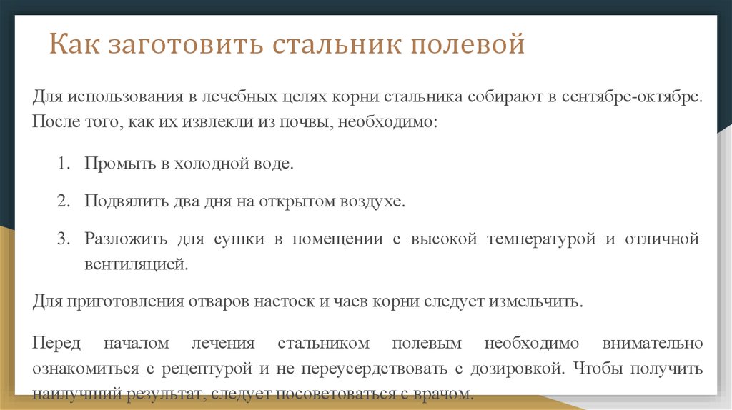 Перед началом лечения стальником полевым необходимо внимательно