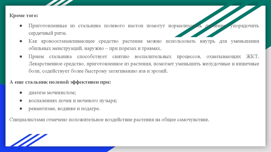 А еще стальник полевой эффективен при: