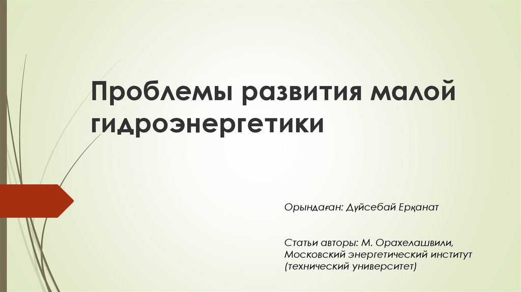 1. Проблемы развития малой гидроэнергетики