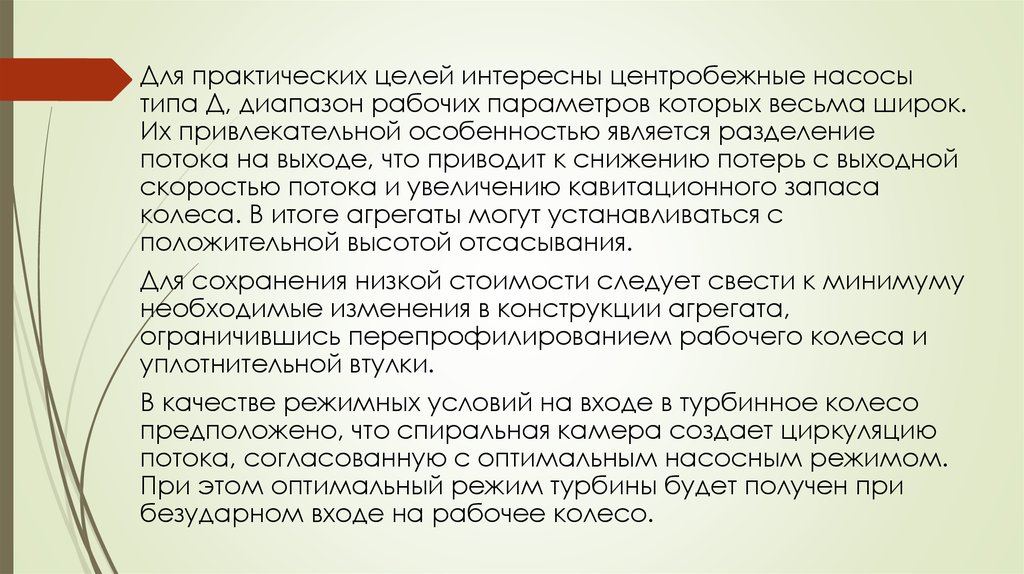 Для практических целей интересны центробежные насосытипа Д, диапазон рабочих параметров которых весьма широк.