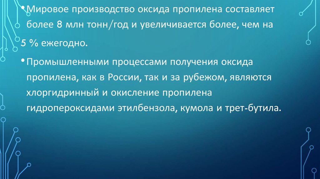 • Мировое производство оксида пропилена составляетболее 8 млн тонн/год и увеличивается более, чем на