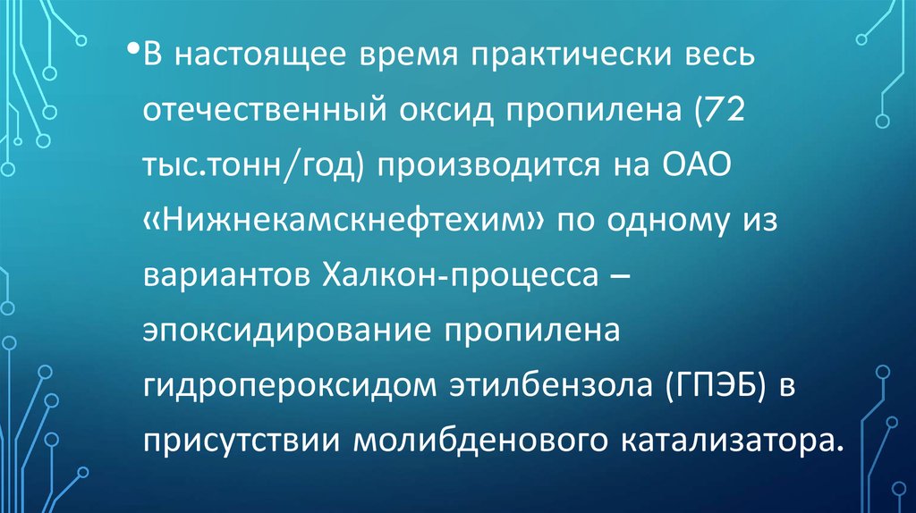 •В настоящее время практически весьотечественный оксид пропилена (72