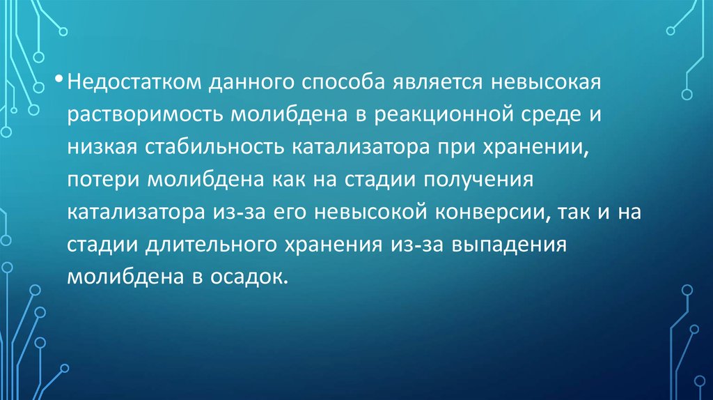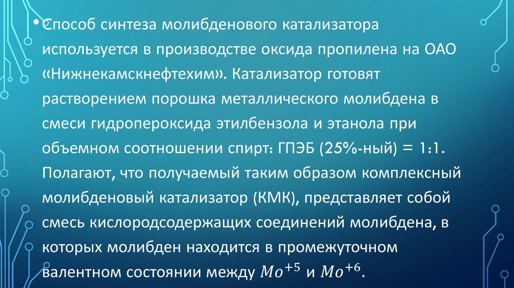 • Cпособ синтеза молибденового катализатораиспользуется в производстве оксида пропилена на ОАО