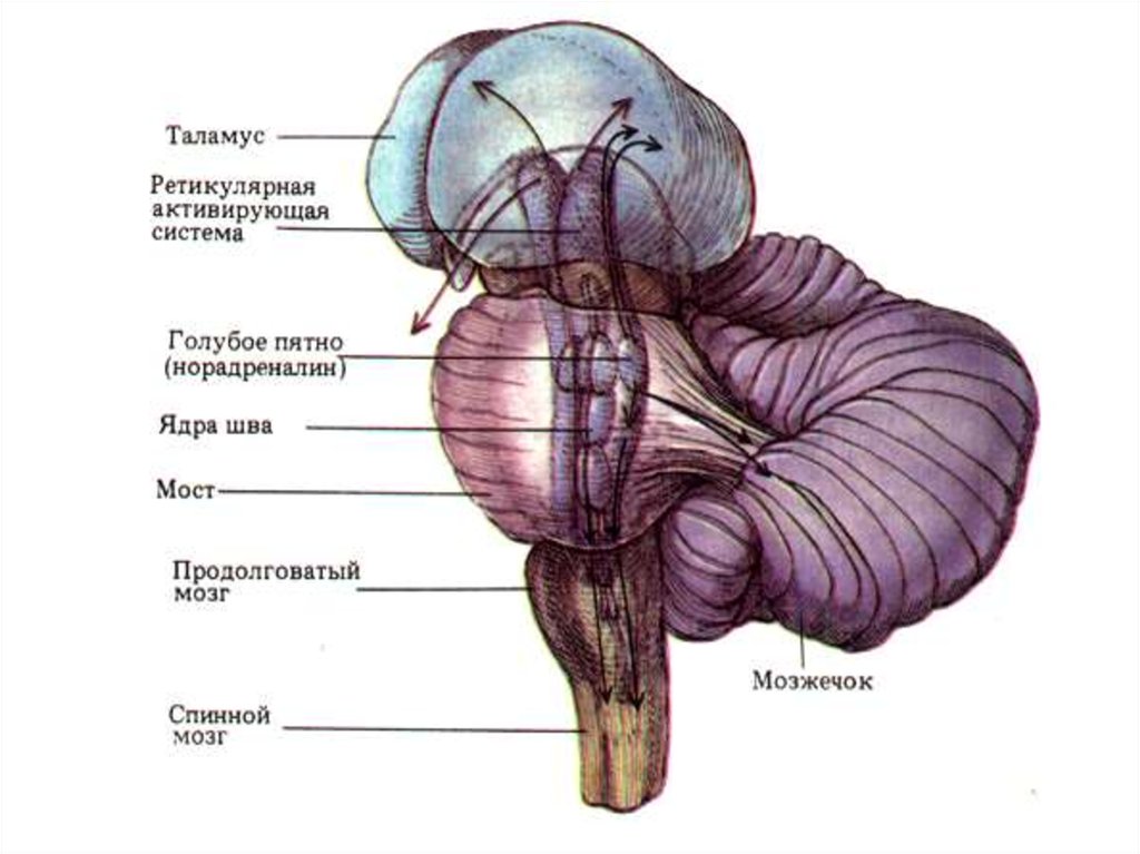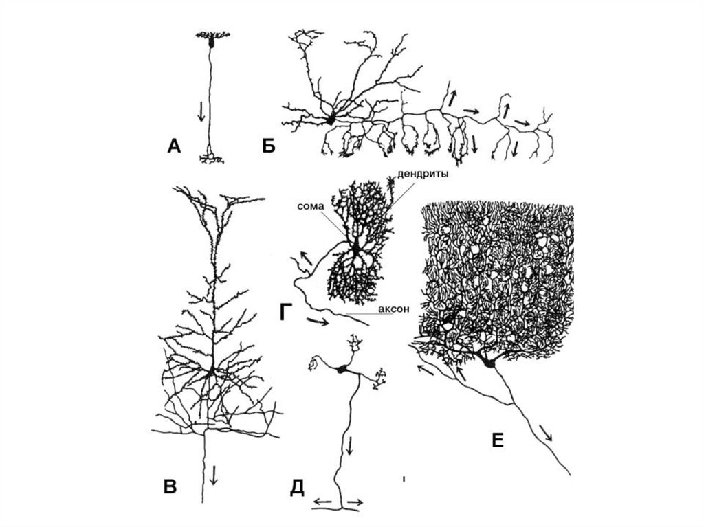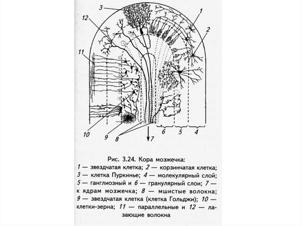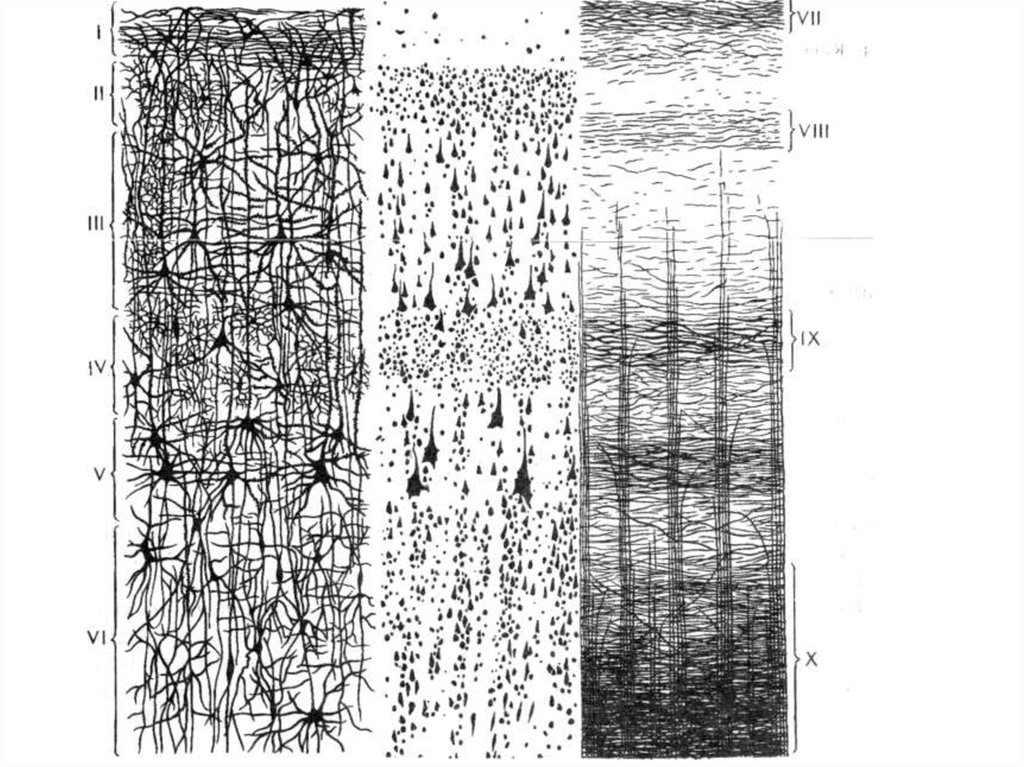 нейронов, редкие горизонтальные нейроны и клеткизерна, волокна неспецифических ядер таламуса