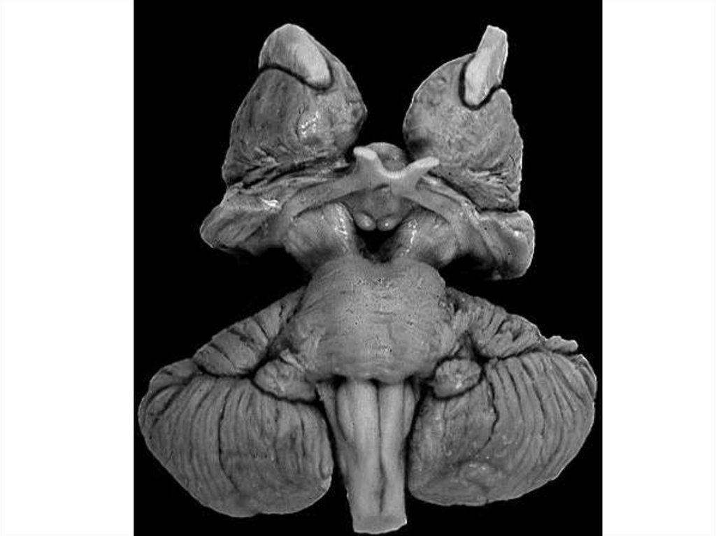 occipitotemporoparietopontinus; 14 — lem-niscus medialis; 15 — brachium colliculi inferioris; 16 — nucl. tractus mesencep-halici nervi trigeminalis; 17 — colliculus cranialis
