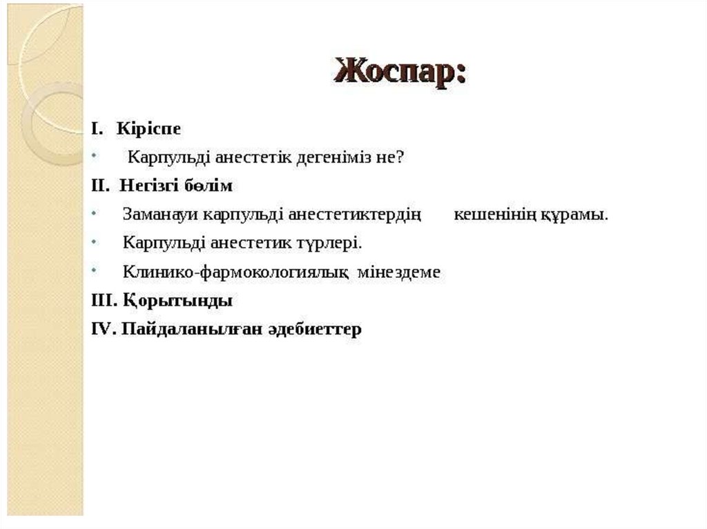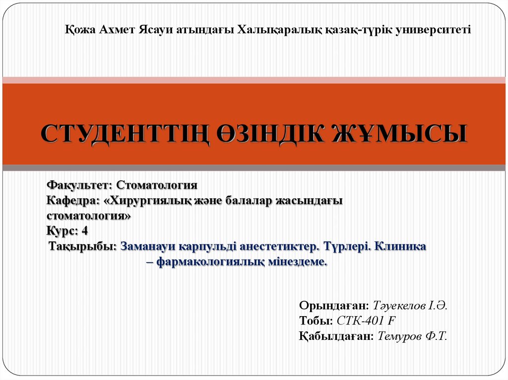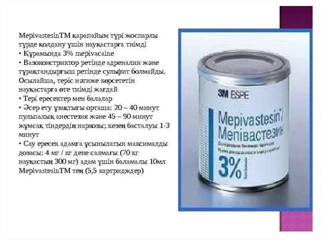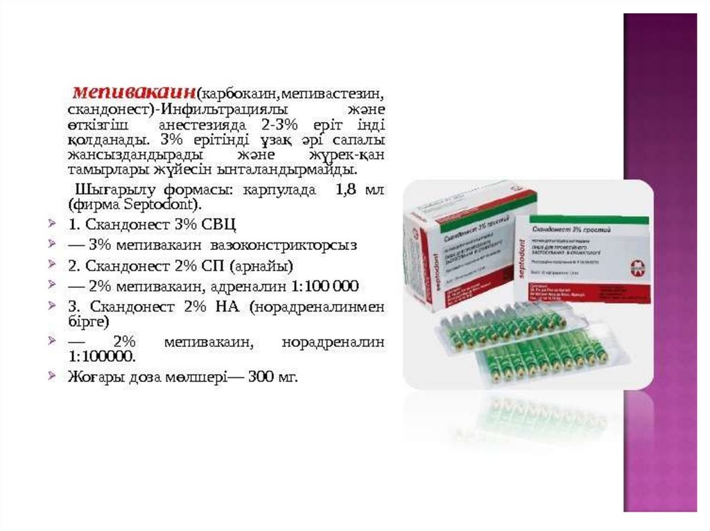 Тақырыбы: Заманауи карпульді анестетиктер. Түрлері. Клиника
