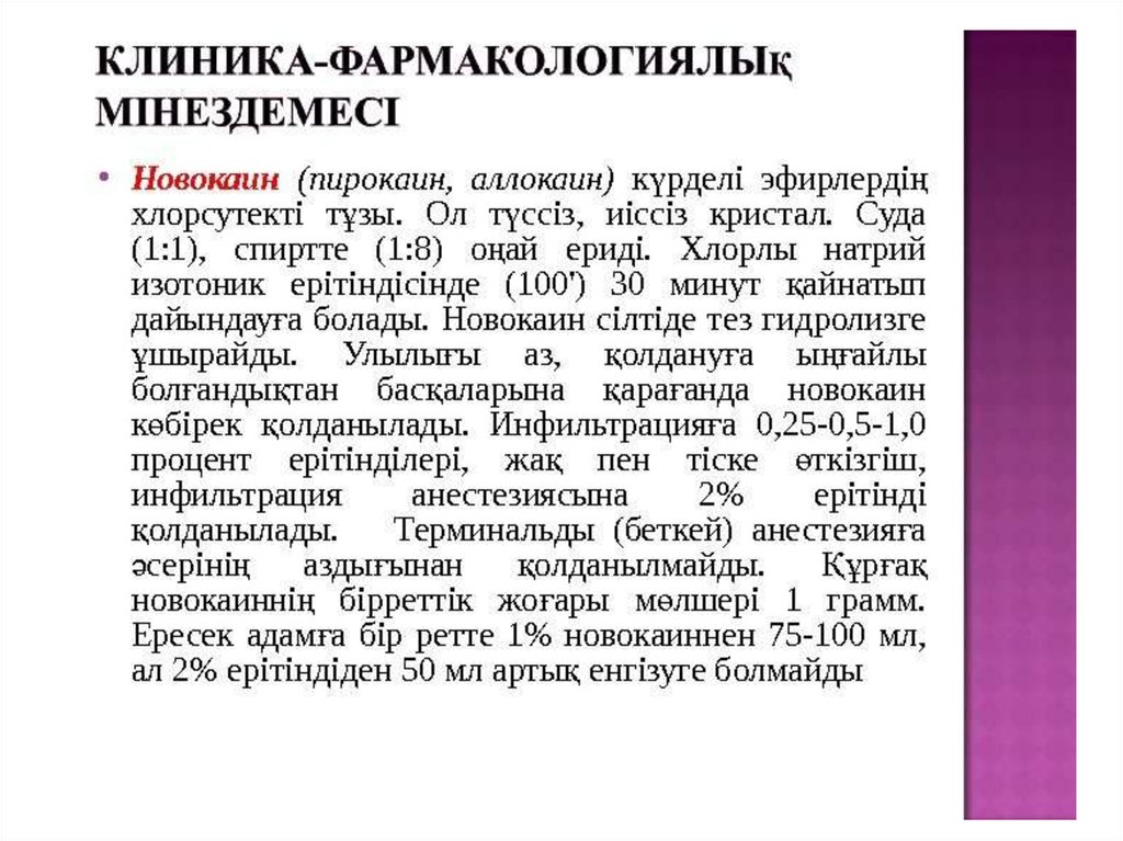 Заманауи карпульді анестетиктер. Түрлері. Клиника - фармакологиялық мінездеме