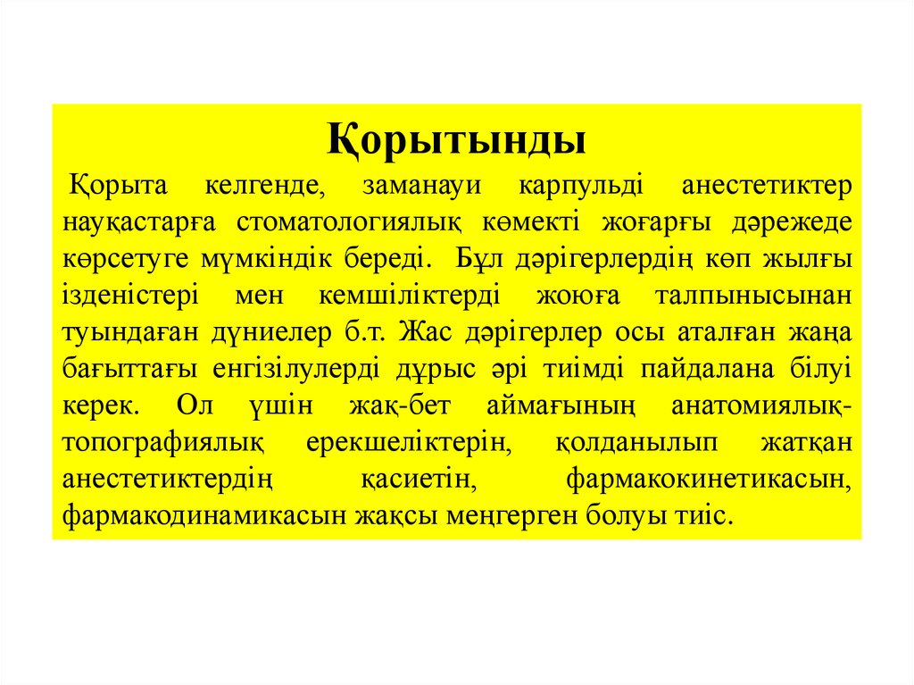 ҚорытындыҚорыта келгенде, заманауи карпульді анестетиктер