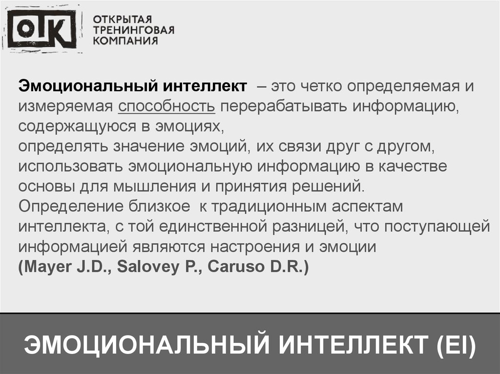 Эмоциональный интеллект – это четко определяемая иизмеряемая способность перерабатывать информацию,
