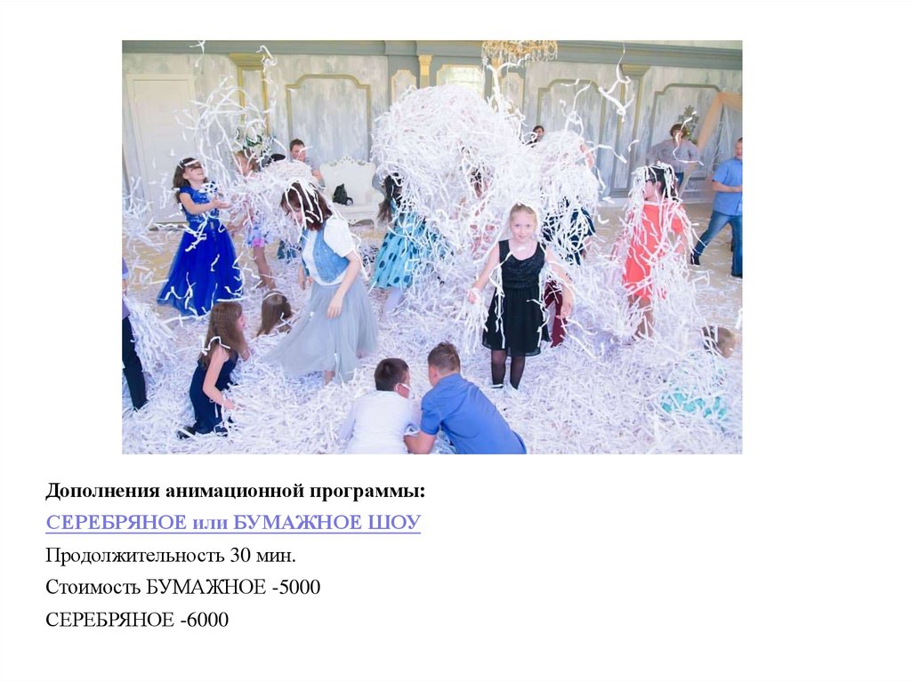 Дополнения анимационной программы:СЕРЕБРЯНОЕ или БУМАЖНОЕ ШОУ