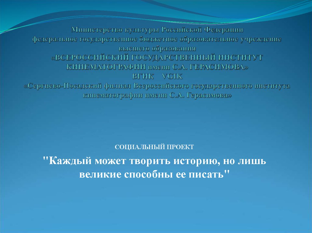 СОЦИАЛЬНЫЙ ПРОЕКТ"Каждый может творить историю, но лишь