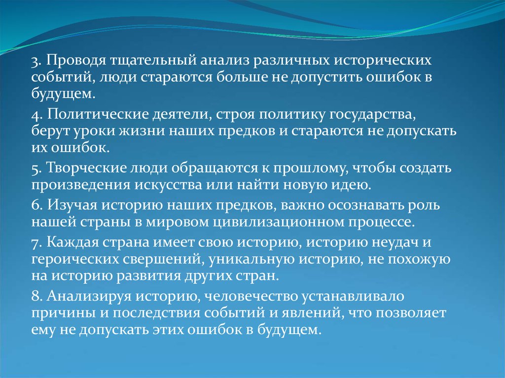 3. Проводя тщательный анализ различных историческихсобытий, люди стараются больше не допустить ошибок в