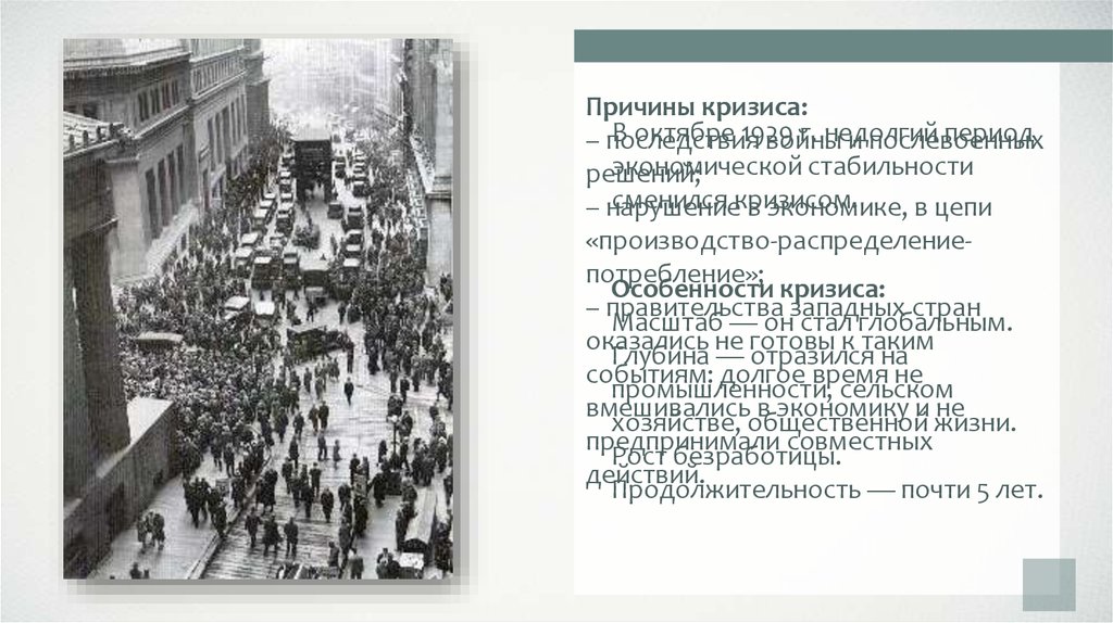 Экономический расцвет 20-х гг. сменился тяжелейшимкризисом.