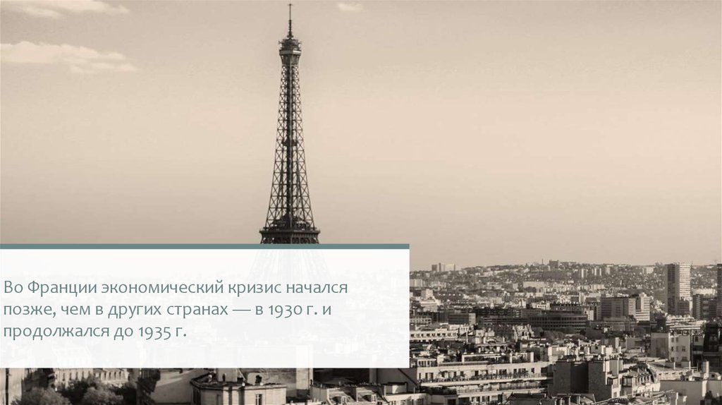 Во Франции экономический кризис началсяпозже, чем в других странах — в 1930 г. и