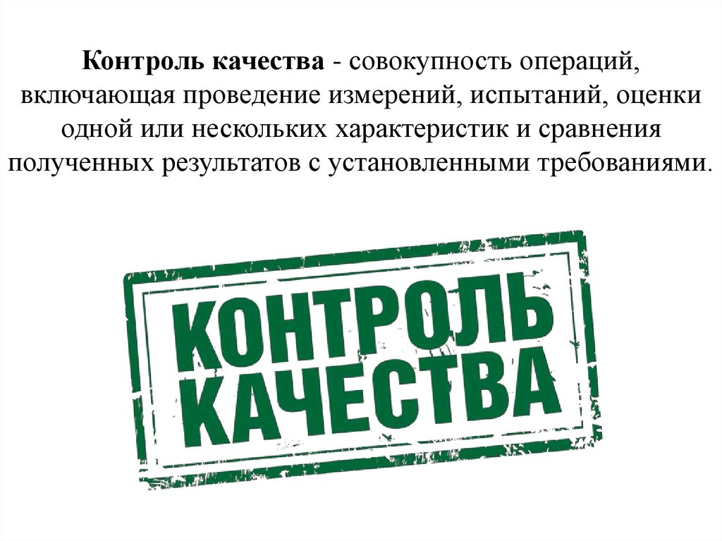 Контроль качества - совокупность операций,включающая проведение измерений, испытаний, оценки