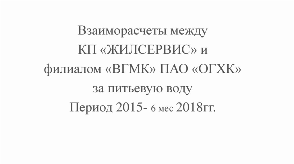 Взаиморасчеты между КП «Жилсервис» и филиалом «ВГМК» ПАО «ОГХК» за питьевую воду. Период 2015 - 6 месяцев 2018 года