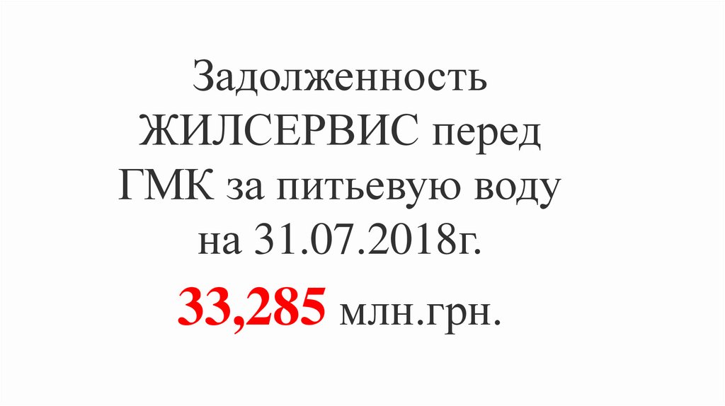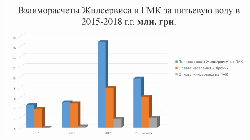 Взаиморасчеты Жилсервиса и ГМК за питьевую воду в2015-2018 г.г. млн. грн.