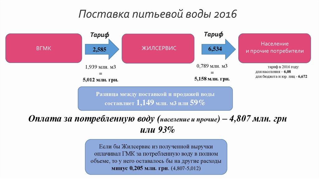Поставка питьевой воды 2016Тариф
