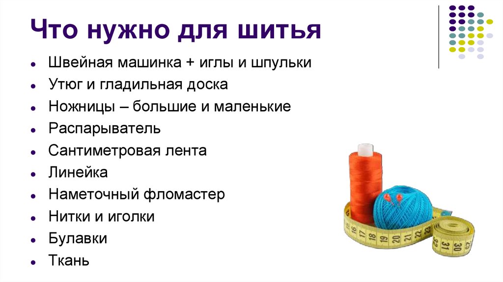 Что нужно для шитьяШвейная машинка + иглы и шпульки