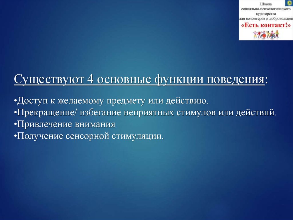 Существуют 4 основные функции поведения:•Доступ к желаемому предмету или действию.