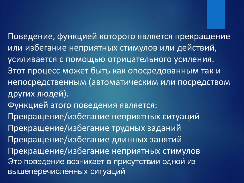 Поведение, функцией которого является прекращениеили избегание неприятных стимулов или действий,