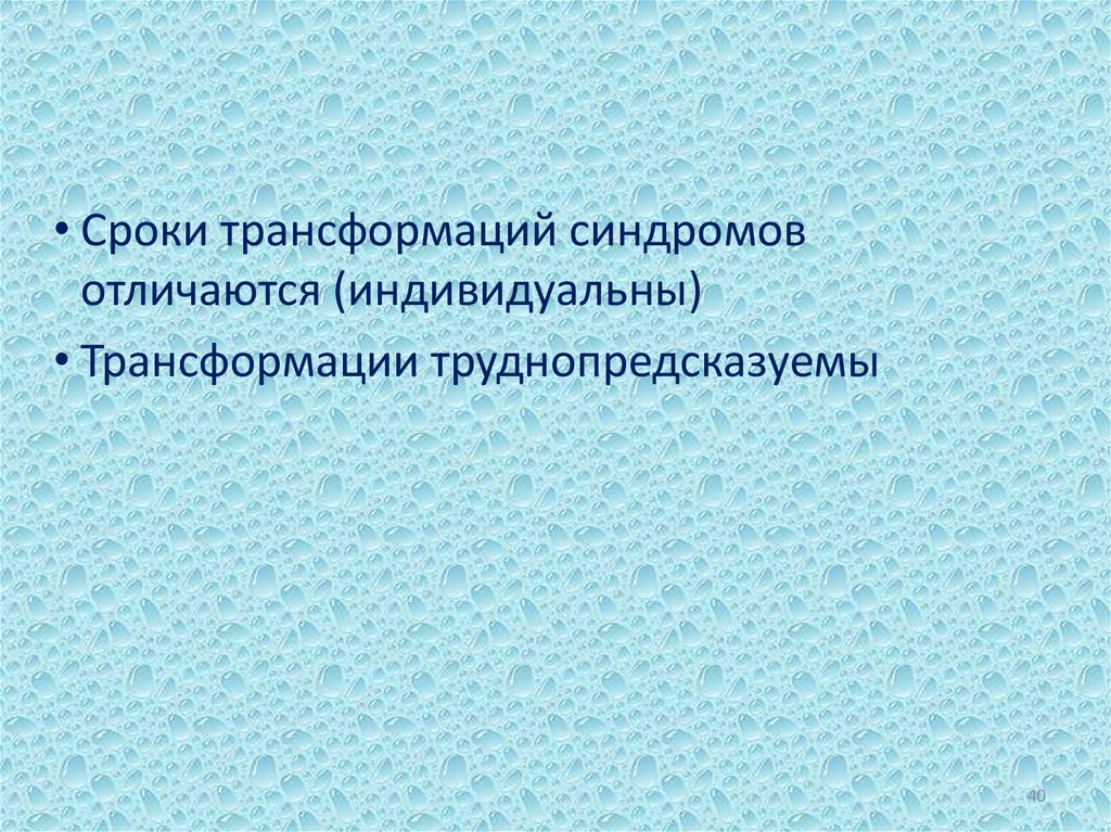 • Сроки трансформаций синдромовотличаются (индивидуальны)