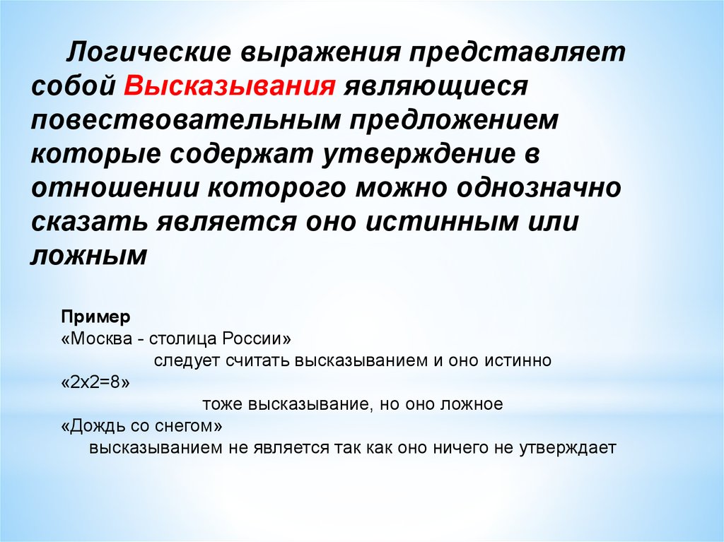 Алгебра логики – это раздел математики,изучающий логические выражения и логические