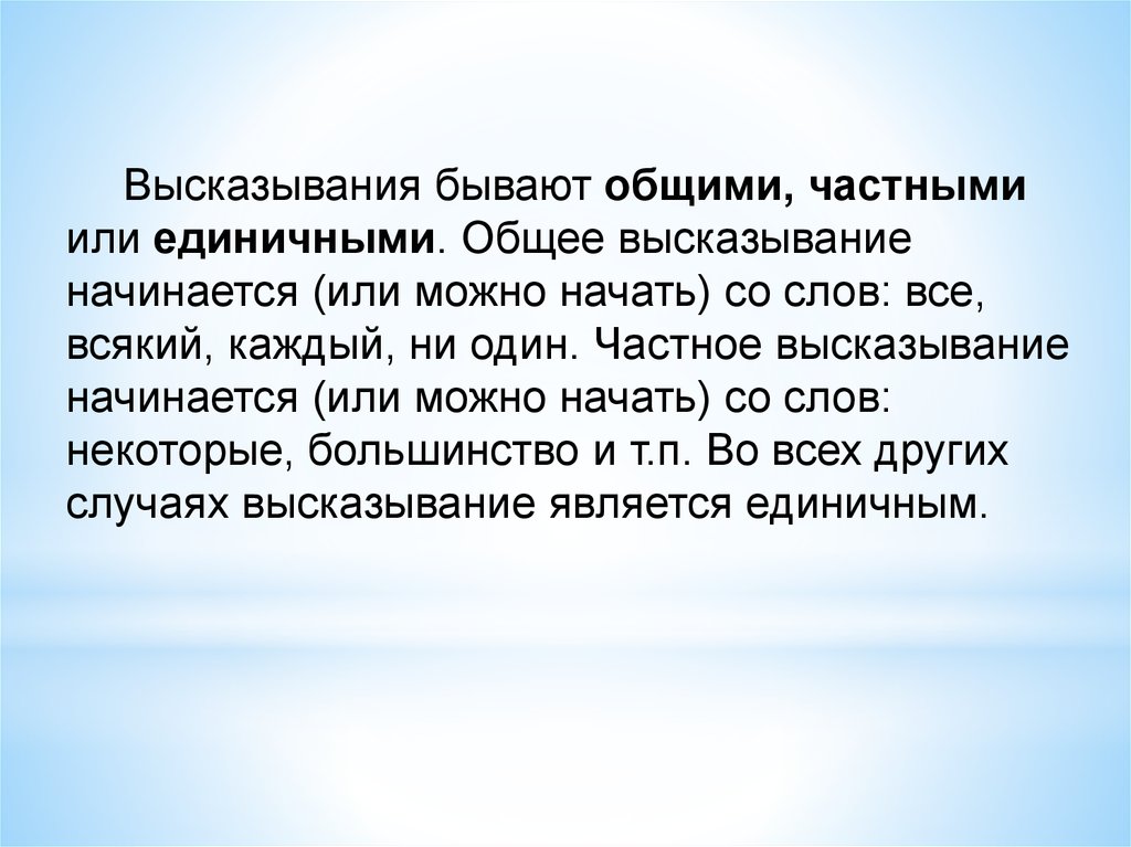 Высказывания бывают общими, частнымиили единичными. Общее высказывание