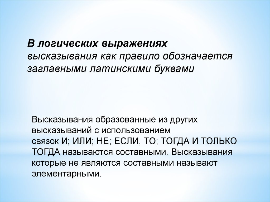 связок И; ИЛИ; НЕ; ЕСЛИ, ТО; ТОГДА И ТОЛЬКО