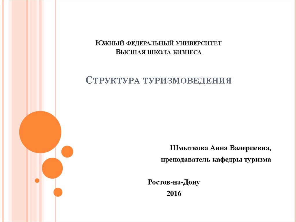 1. Южный федеральный университет Высшая школа бизнеса Структура туризмоведения