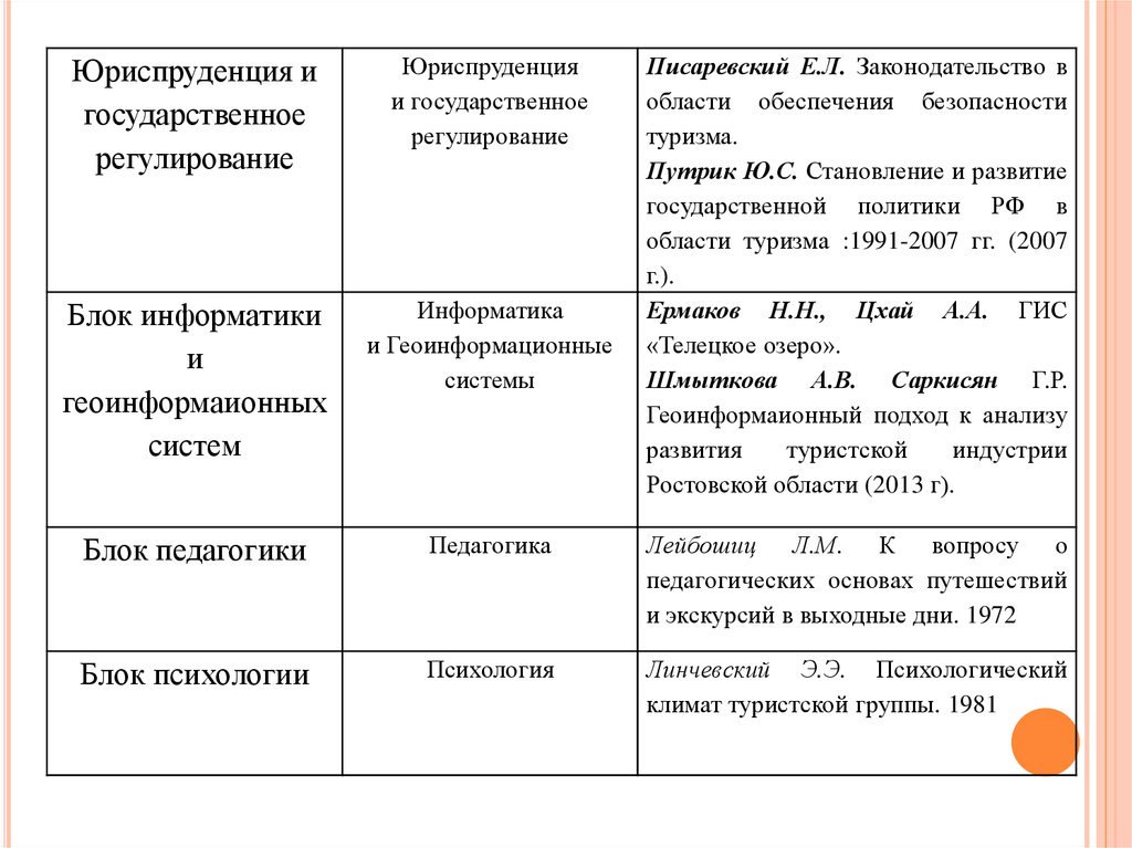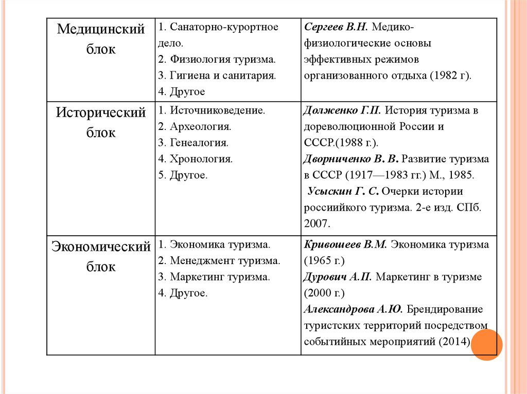 научных направлений, наиболее важные из них - туристское