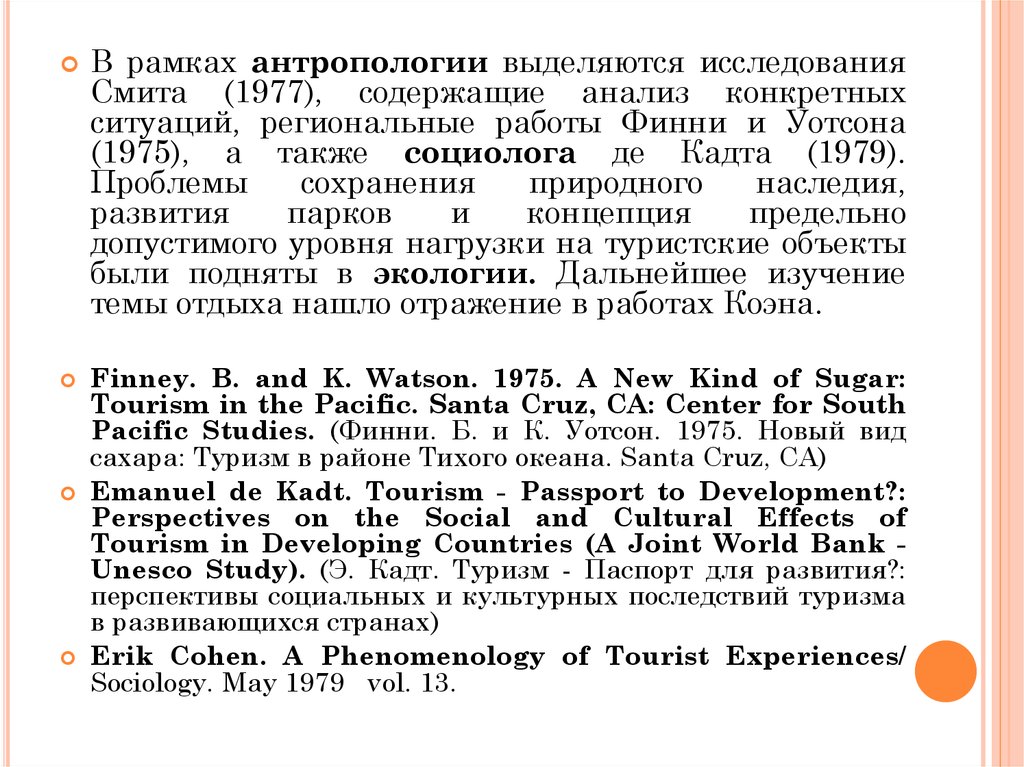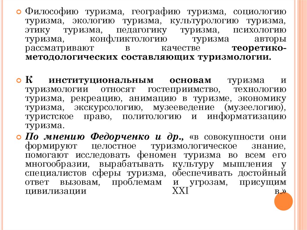 направлений и феноменов - социология туризма,