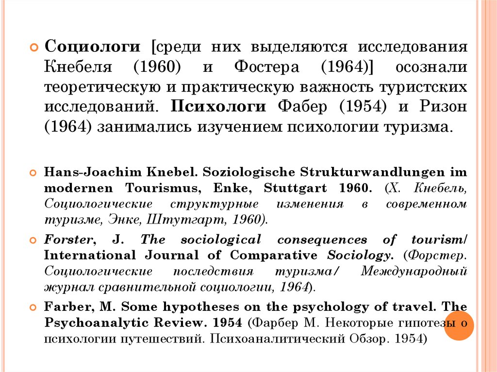 туризм и социология порождают появление ряда