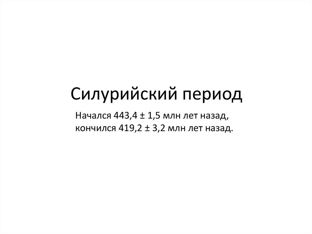 Силурийский периодНачался 443,4 ± 1,5 млн лет назад,