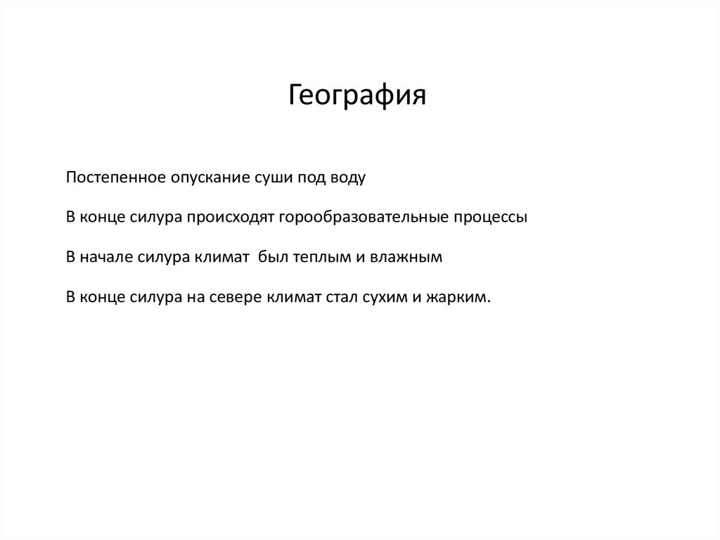 В конце силура на севере климат стал сухим и жарким.