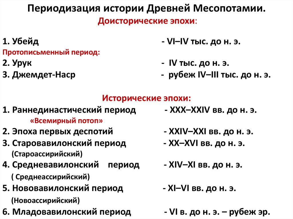 Периодизация истории Древней Месопотамии.Доисторические эпохи:
