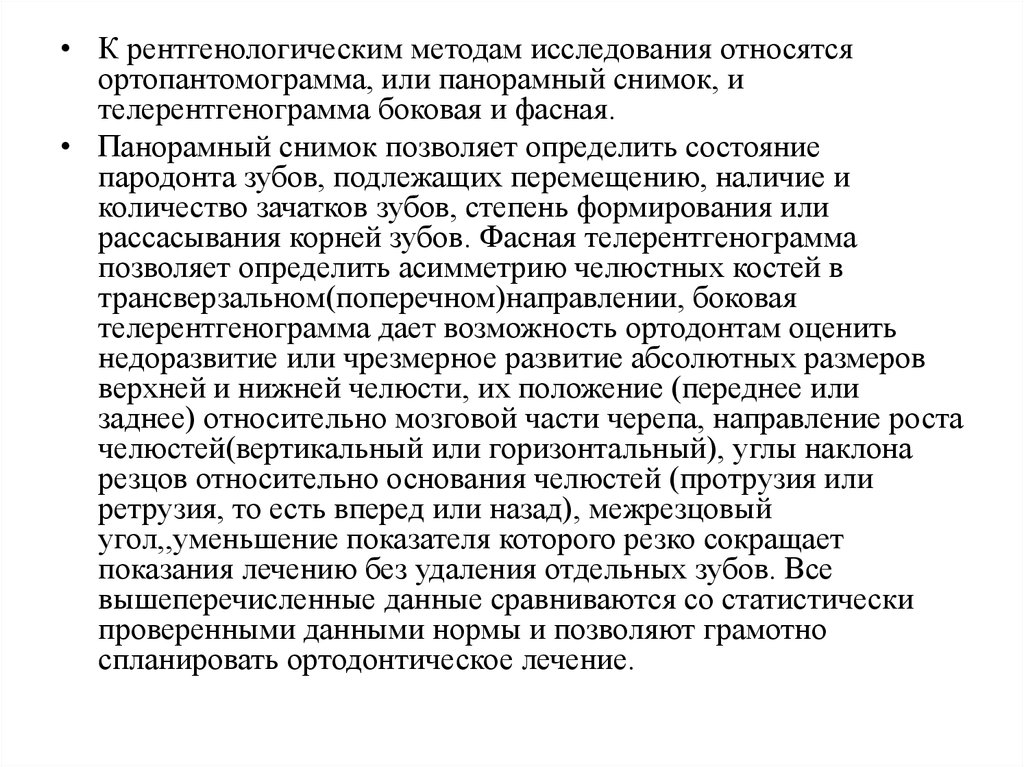 • После завершения клинического обследования для уточнениядиагноза ортодонт прибегает к инструментальным методам