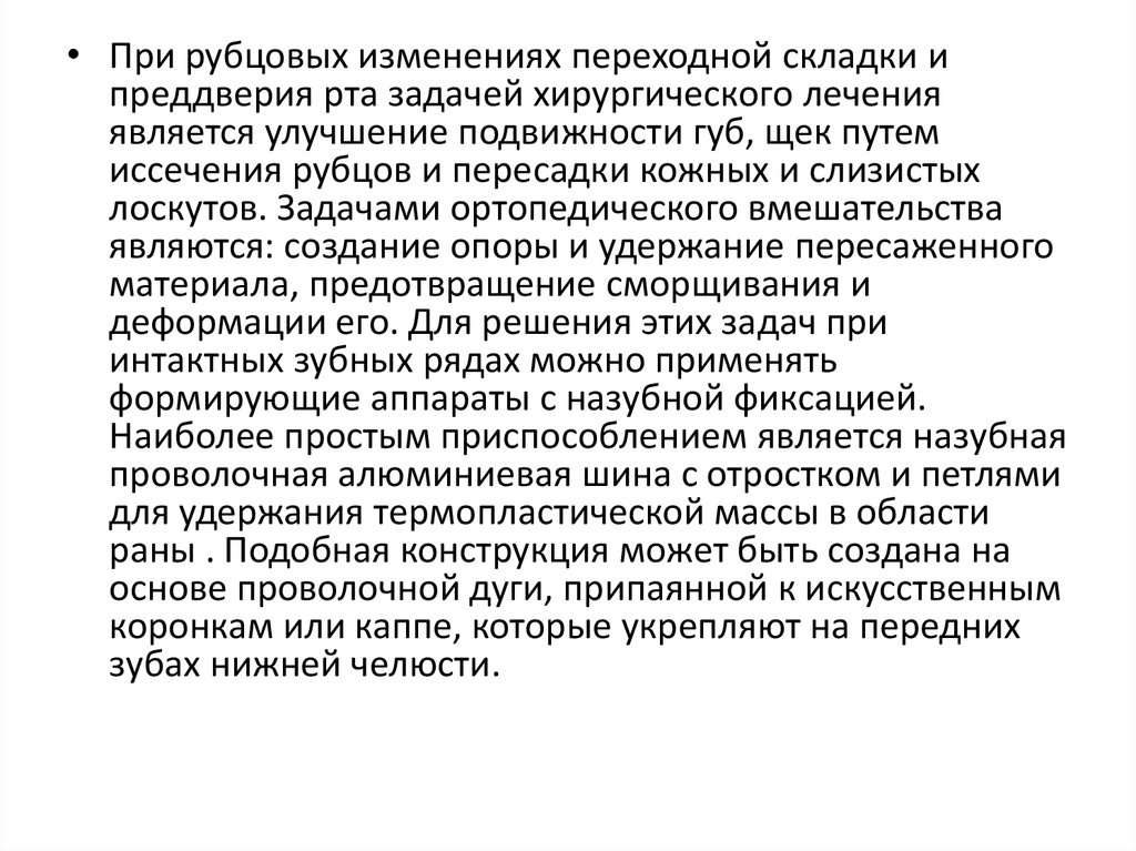 • При рубцовых изменениях переходной складки ипреддверия рта задачей хирургического лечения