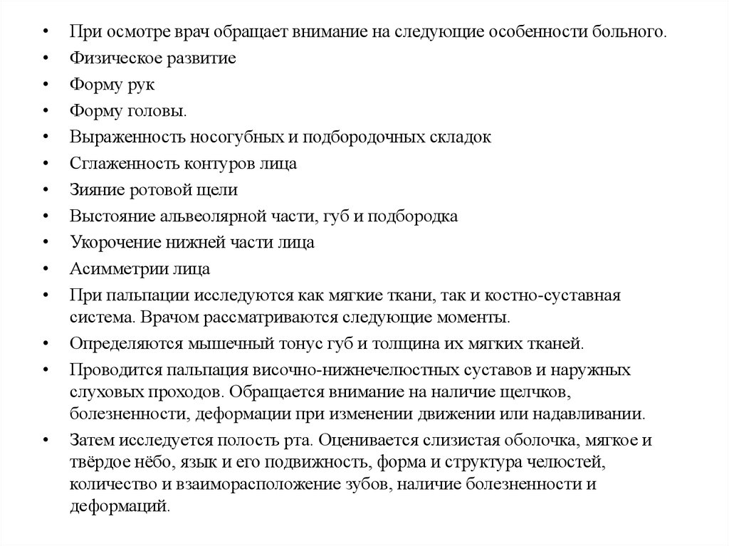 Затем исследуется полость рта. Оценивается слизистая оболочка, мягкое и
