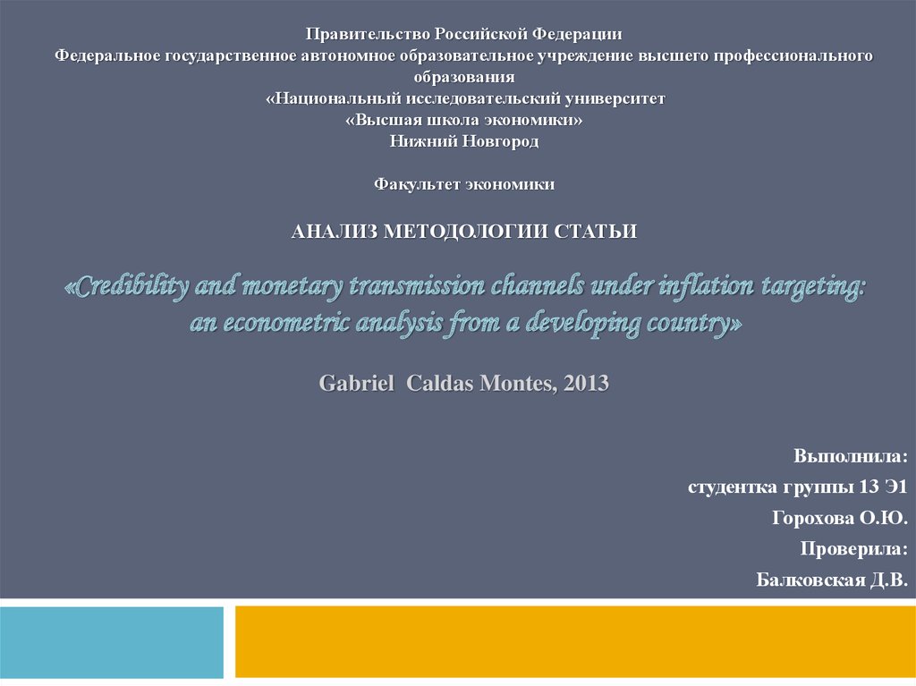 Анализ методологии статьи «Credibility and monetary transmission channels under inflation targeting»