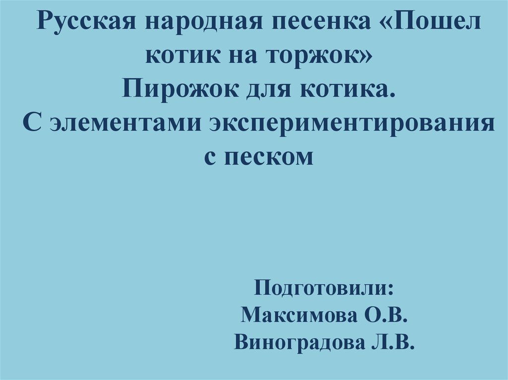 1. Русская народная песенка «Пошел котик на торжок» Пирожок для котика. С элементами экспериментирования с песком