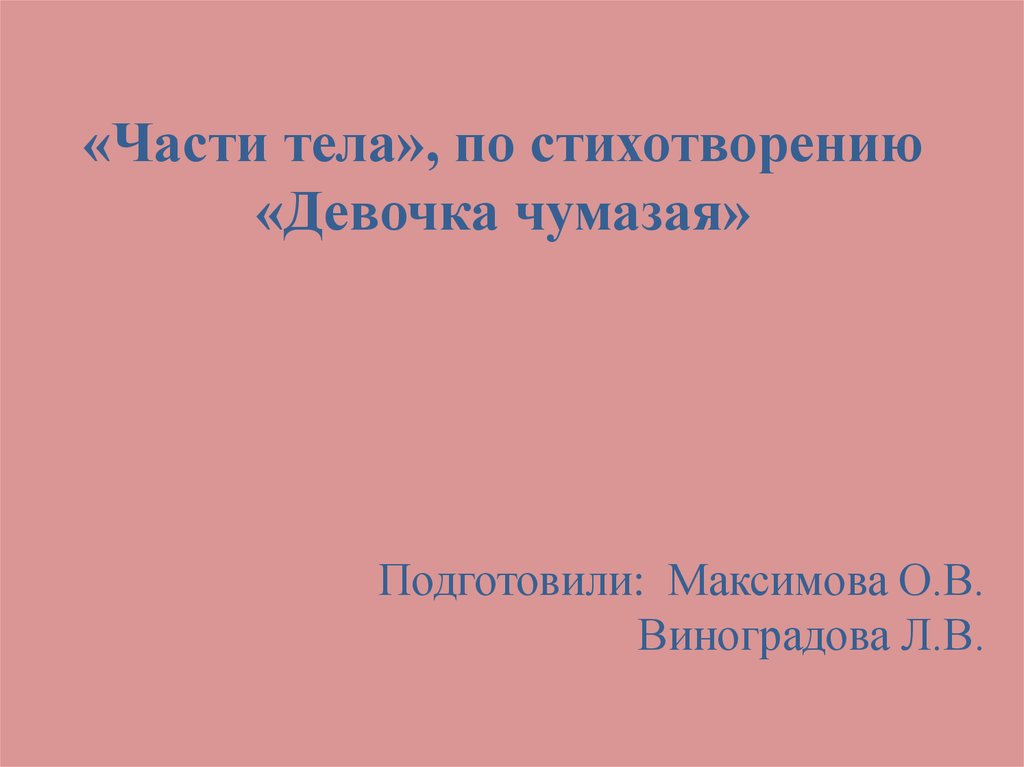 1. «Части тела», по стихотворению «Девочка чумазая»