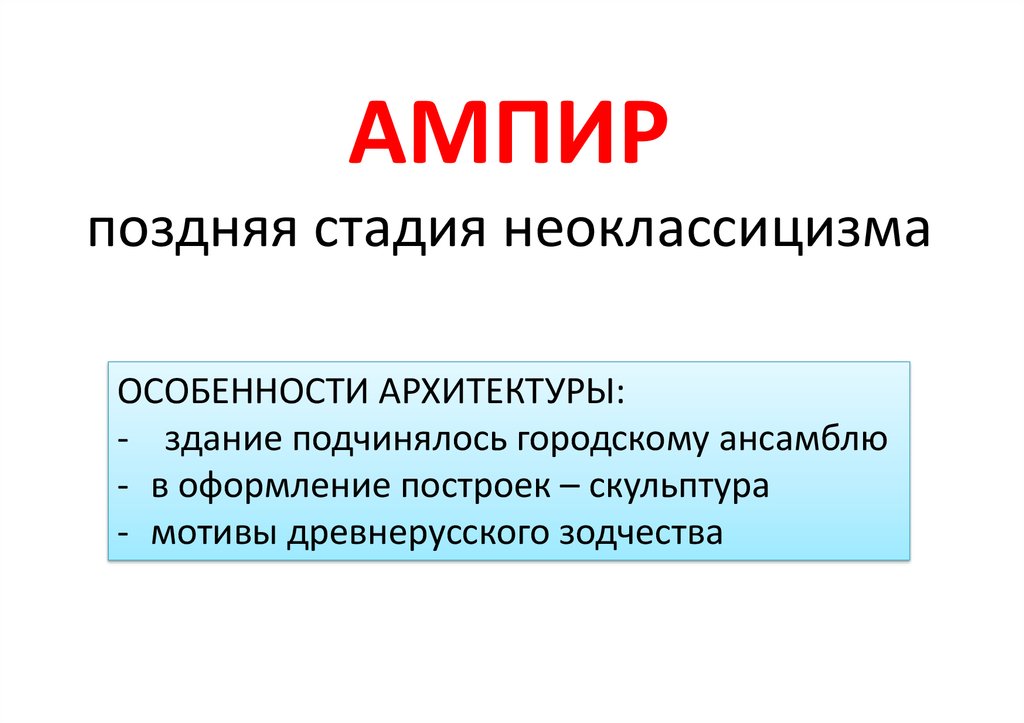 АМПИРпоздняя стадия неоклассицизма