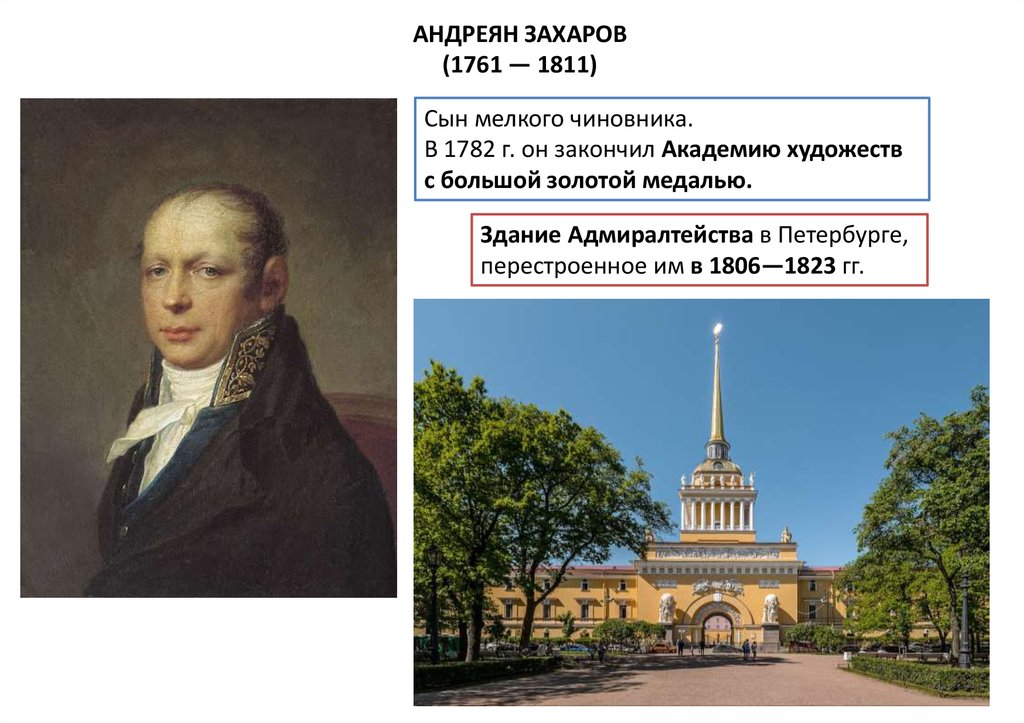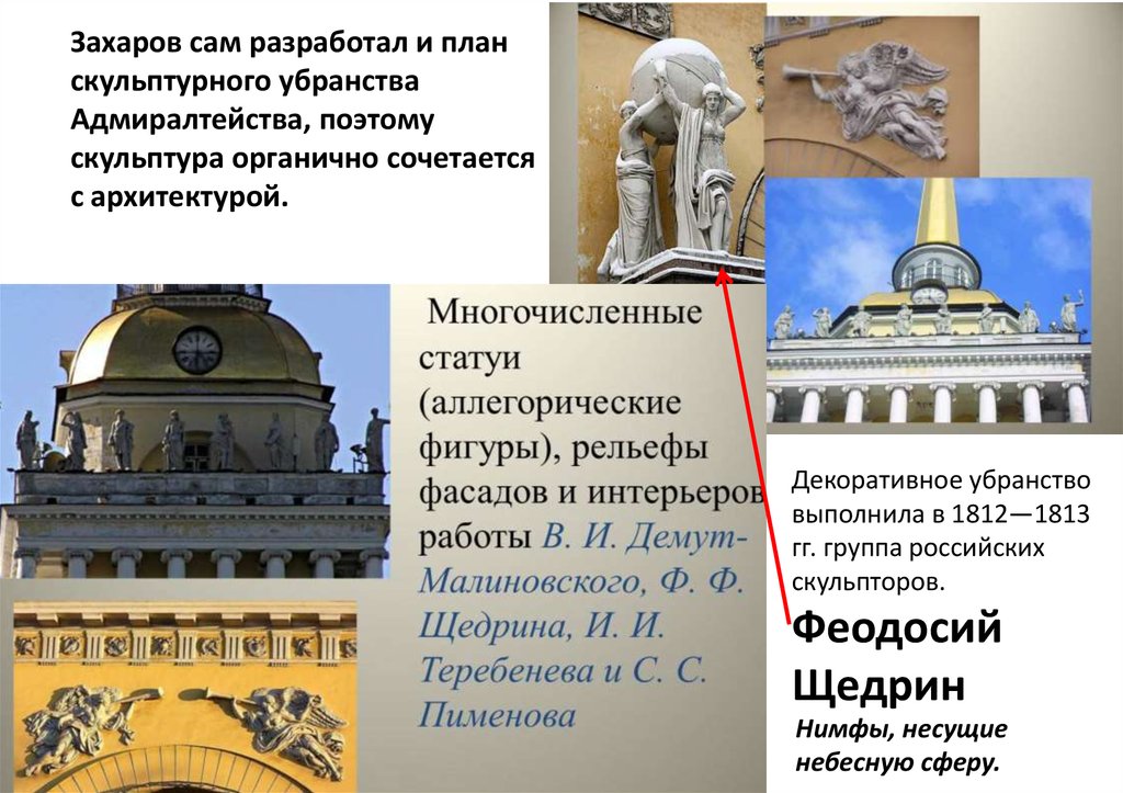 Захаров сам разработал и планскульптурного убранства