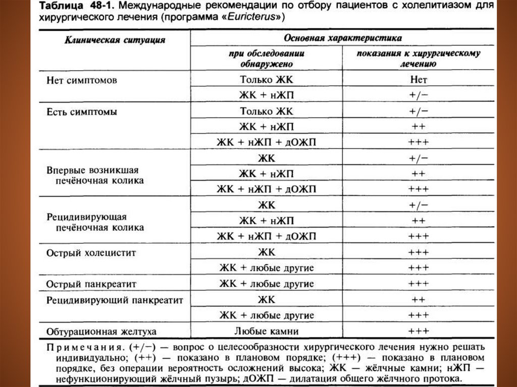 Показания к хирургическому лечению ЖКБ: