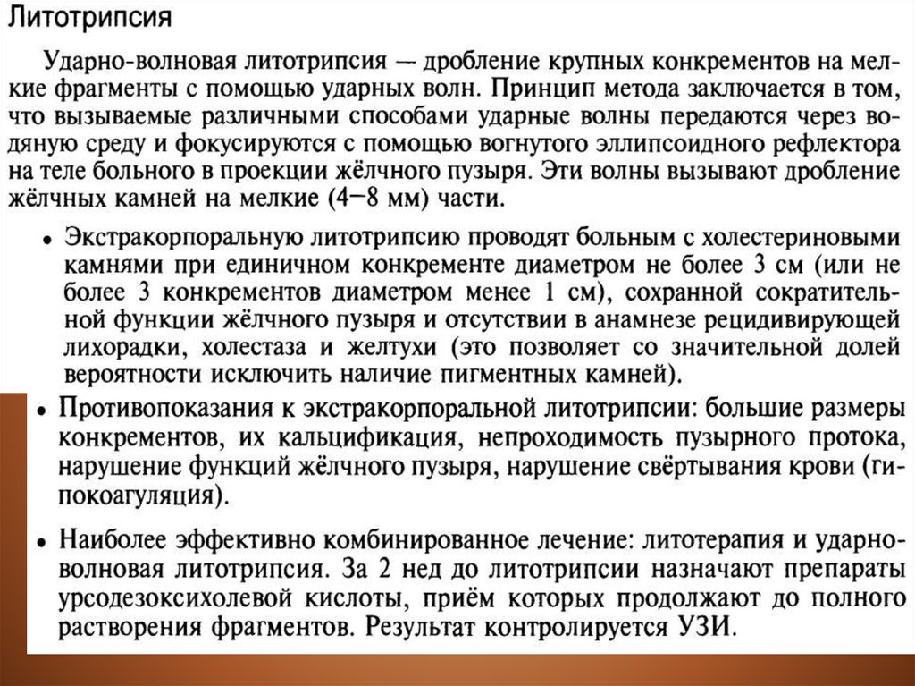 жёлчного пузыря. Литолитическое лечение считают эффективным при полном