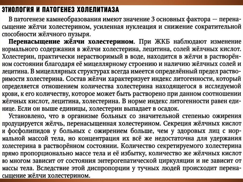 Рис. Факторами, влияющими на образованиехолестериновых камней, являются: