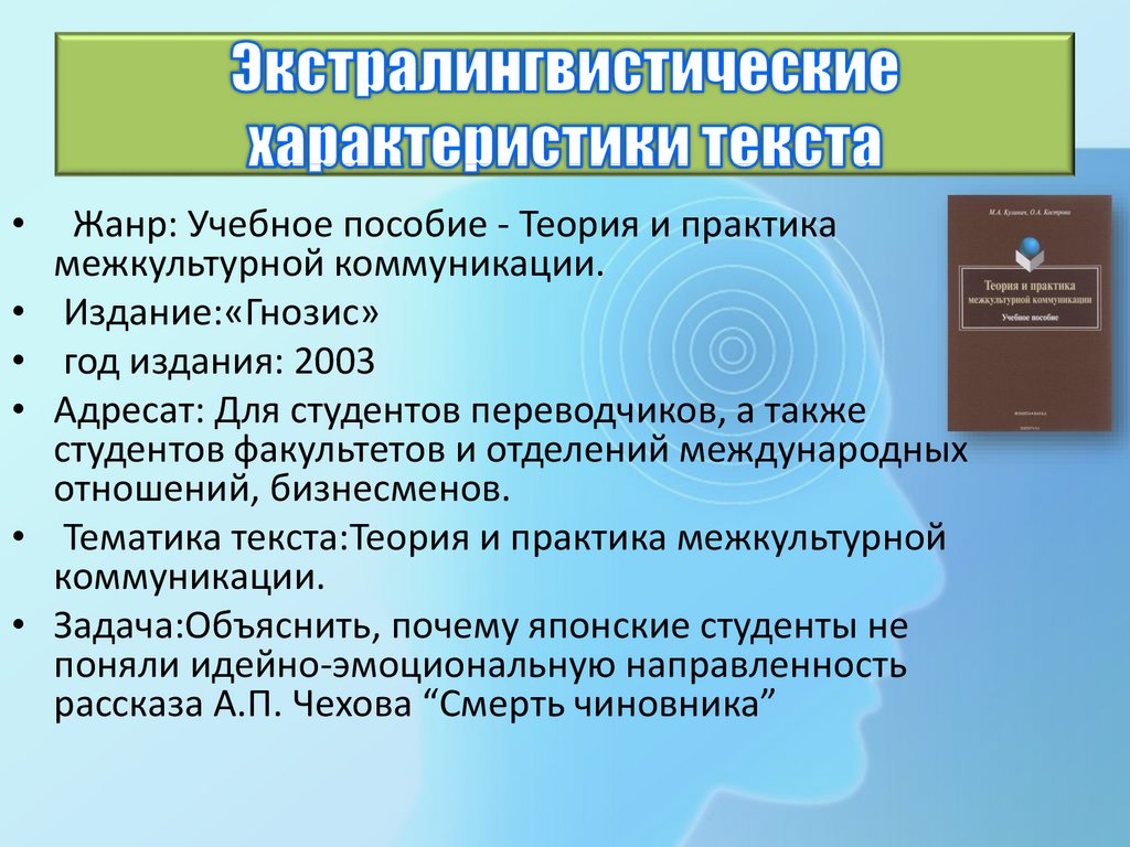 Тематика текста:Теория и практика межкультурной